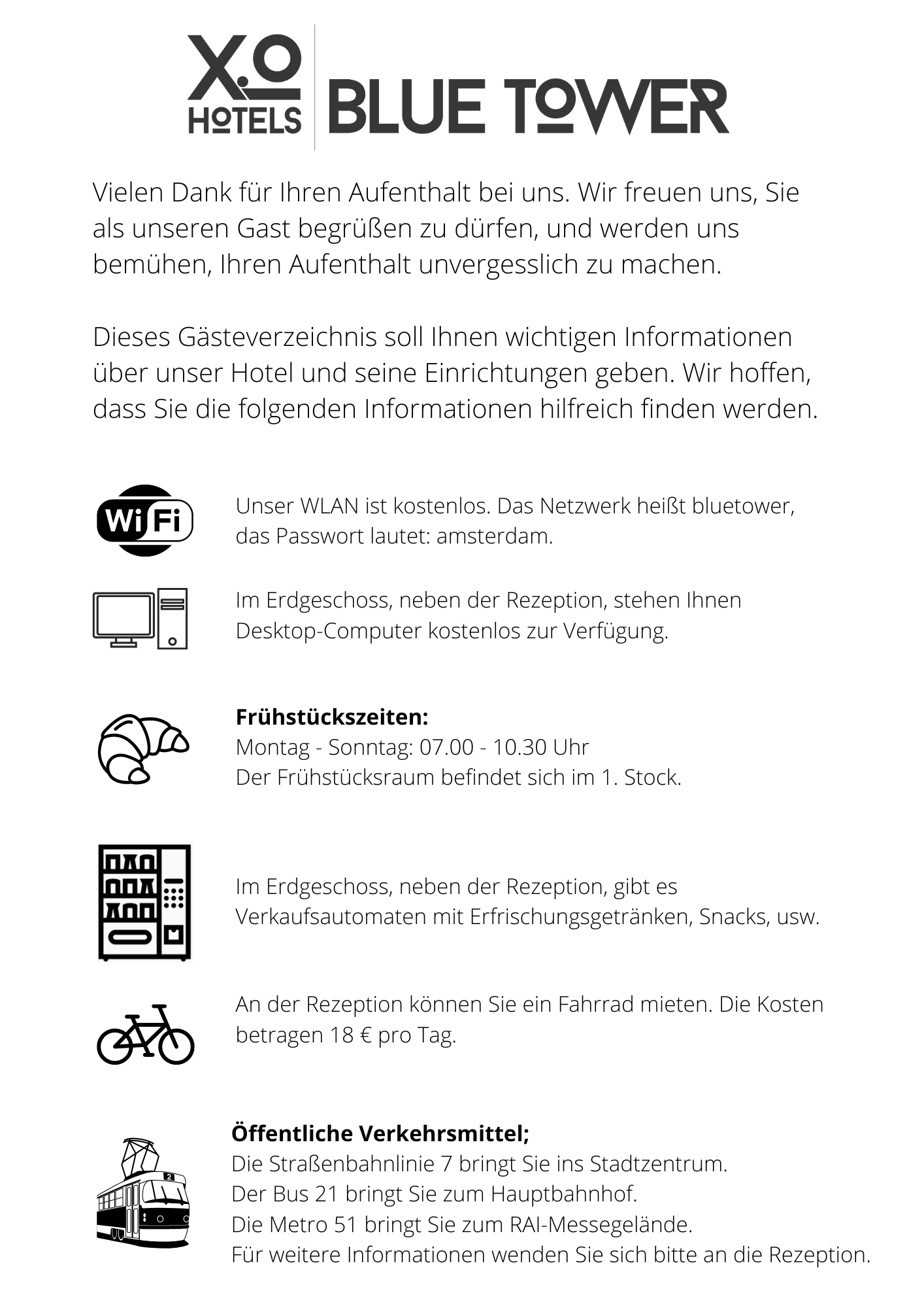 XO Hotels Blue Tower Online-Gast-Verzeichnis
