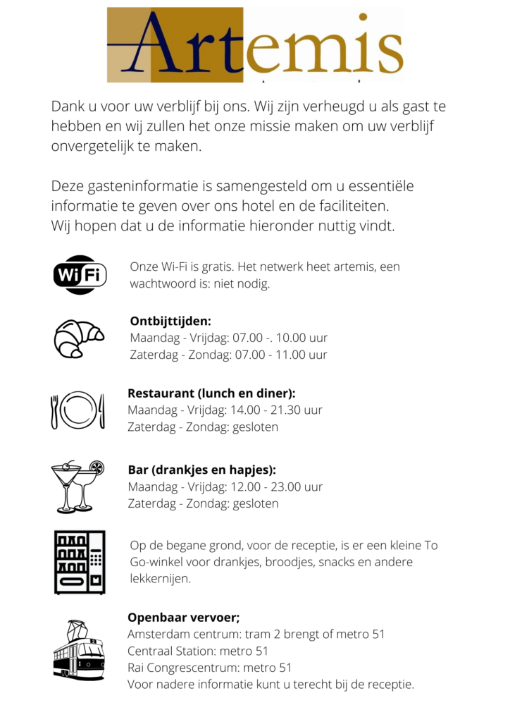 Hotel Artemis - Online gasten informatie